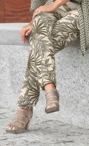 Bedruckte Jersey-Hose mit Schlupfbund und zwei Taschen. Elasticbord am Beinabschluss.