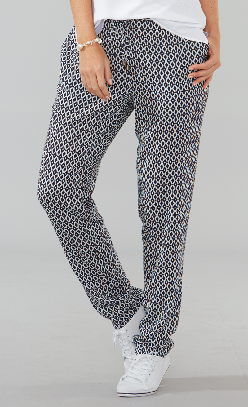 Elastischer Bund mit Kordelzug. Zwei Taschen.
