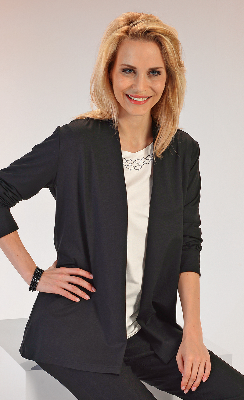 Jerseyweste in modisch figurumspielender Form. Ohne Knöpfe.