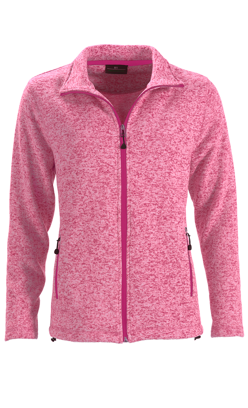 Modische Kuschelfleecejacke mit Strickaussenseite, Reissverschluss und zwei praktischen Reissverschlusstaschen. Pflegeleichte Qualität.