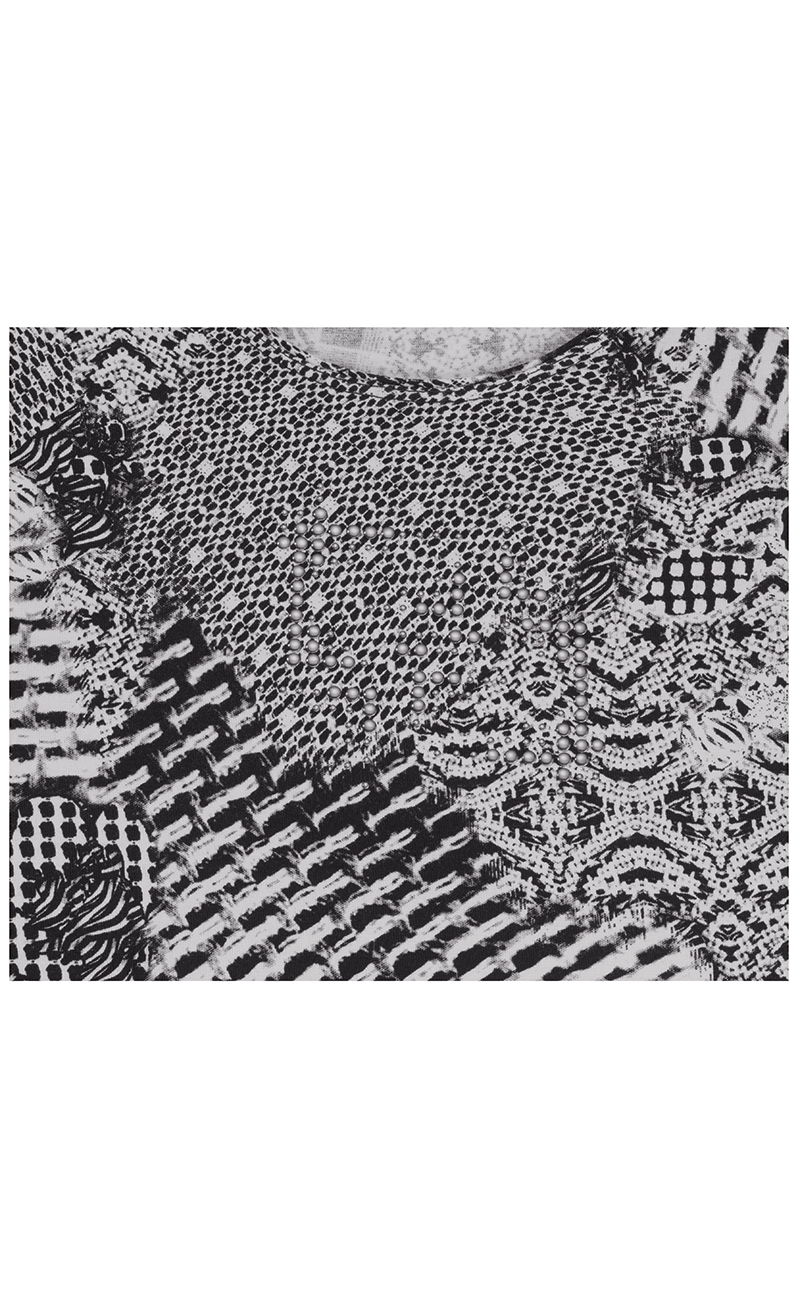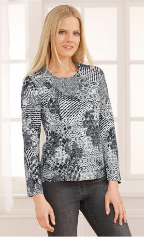 Bedruckt. Rundhals und lange Ärmel zum Krempeln.