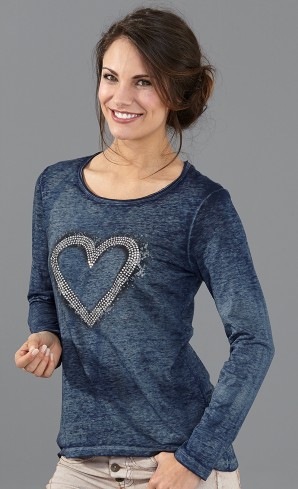 Shirt mit Plättchenverzierung im Vorderteil. Langarm.