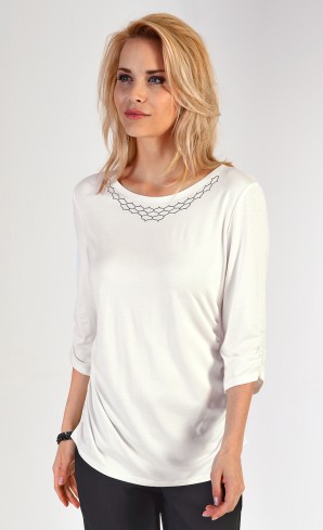 Vielseitig kombinierbares Shirt mit 3/4 Arm. Seitlich gerafft.
