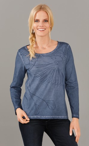 Dezenter Ton-in-Ton Druck im Vorderteil. Modische Waschung. Gerade Form.