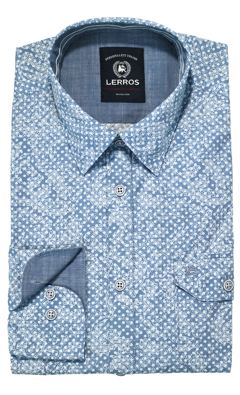 Hemd mit diskretem Alloverdruck und zwei Brusttaschen mit Knöpfen. Kann gut auch über der Hose getragen werden.