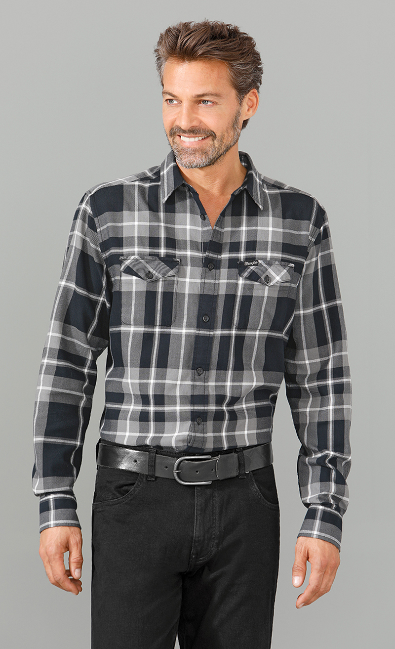 Kent Kragen. Zwei Brusttaschen mit Patten. Abgerundeter Saum.