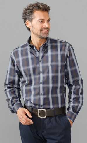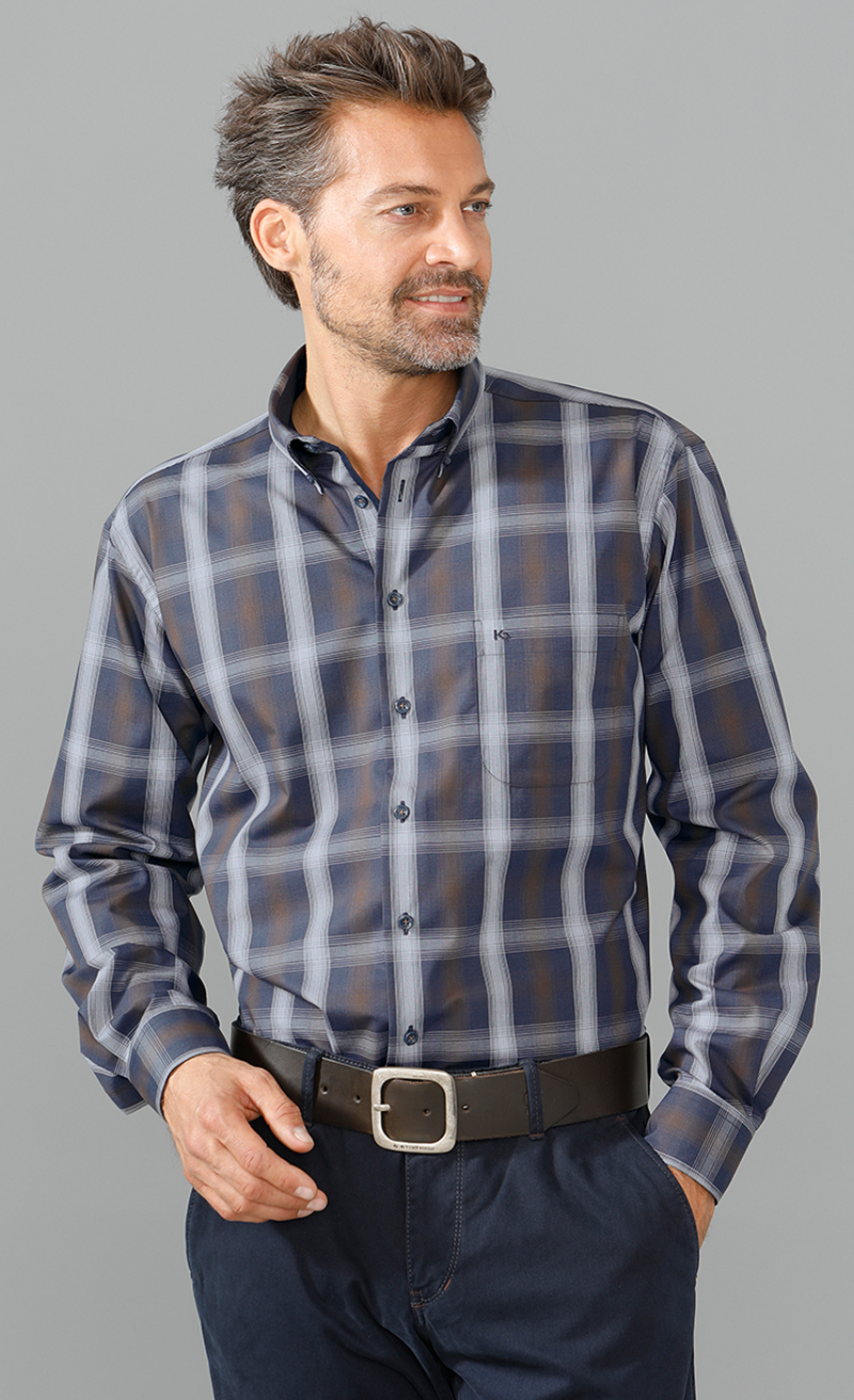 Brusttasche. Kragen Button-Down. Kragen und Manschetten farblich unterlegt. Verstellbare Manschette.