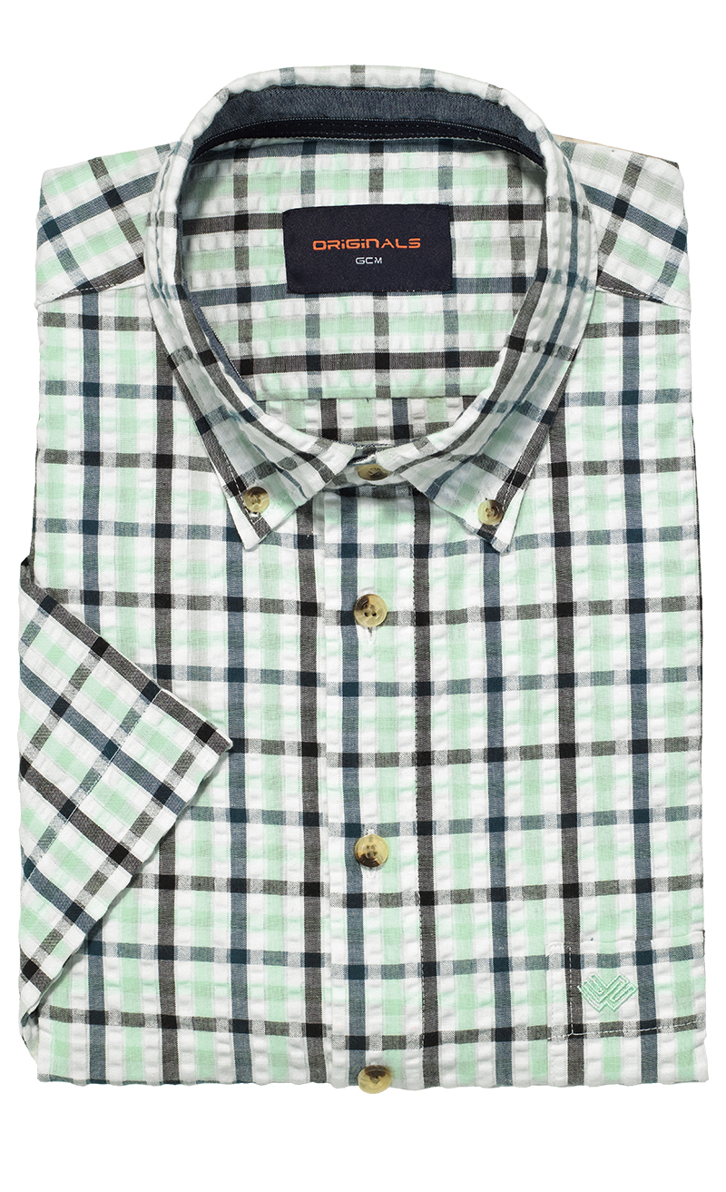 Modisches, bequem geschnittenes Kurzarmhemd mit einer Brusttasche. Kann gut auch über der Hose getragen werden. Pflegeleichtes Seersucker-Material.