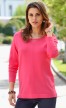 Pulli in modisch kastiger Form mit kleinen Seitenschlitzen. Vorne mit Teilungsnaht un Ausschnitt dezent mit Strass verziert.