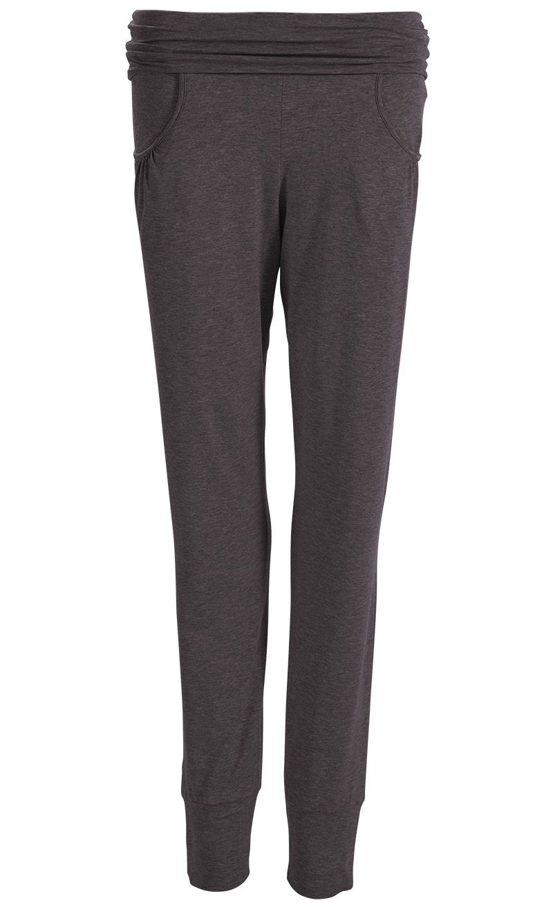 Taille souple et ajustable ne comprimant pas. Finitions en bords-côtes élastiques et deux poches latérales avec une petite pince.
