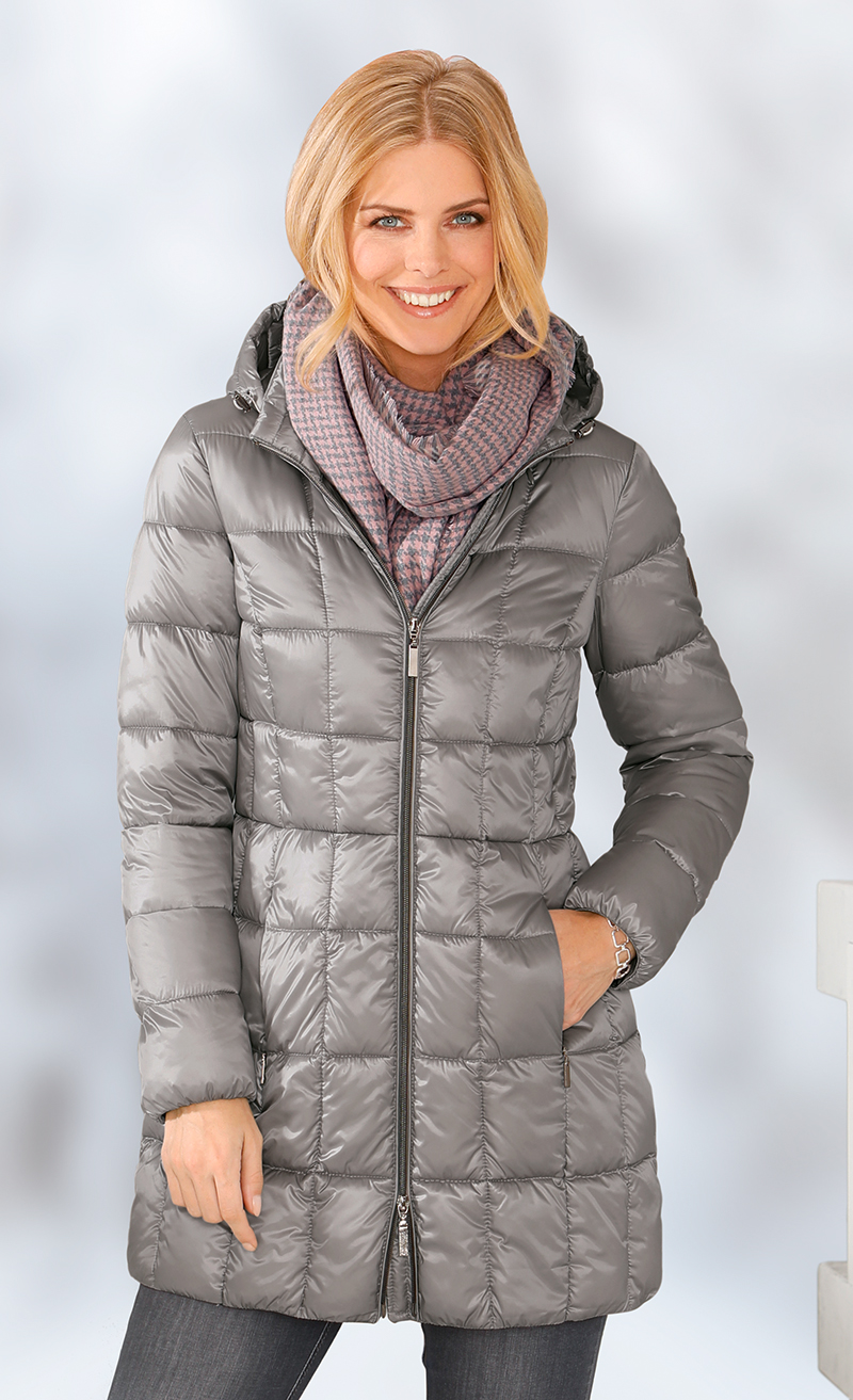Fermeture éclair à double sens. Capuche détachable. Deux poches à fermeture éclair. La fibre fonctionnelle est souple, légère et pourtant chaude. Pas de plumes d'animaux.