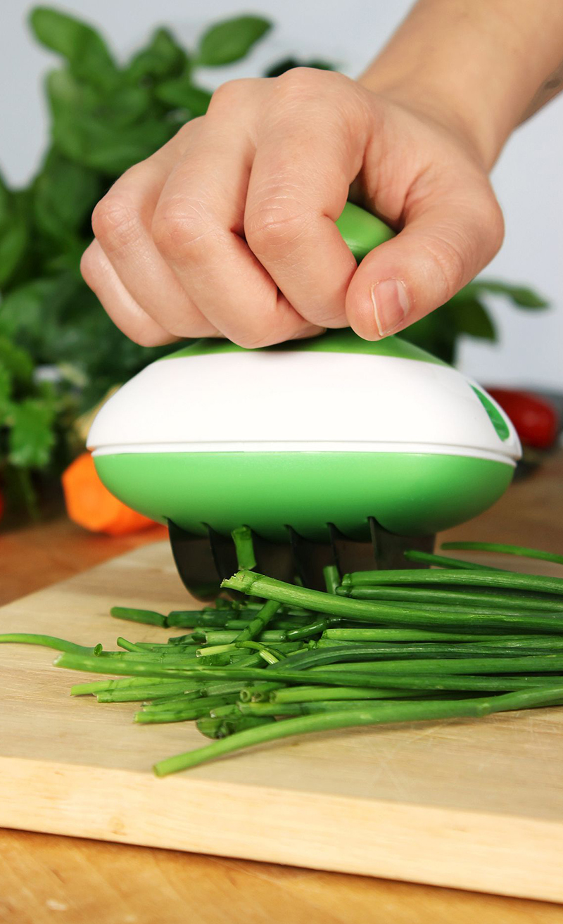 Pour couper facilement les herbes aromatiques. Poignée ergonomique antidérapante et six roues de coupe rotatives en acier inoxydable.
