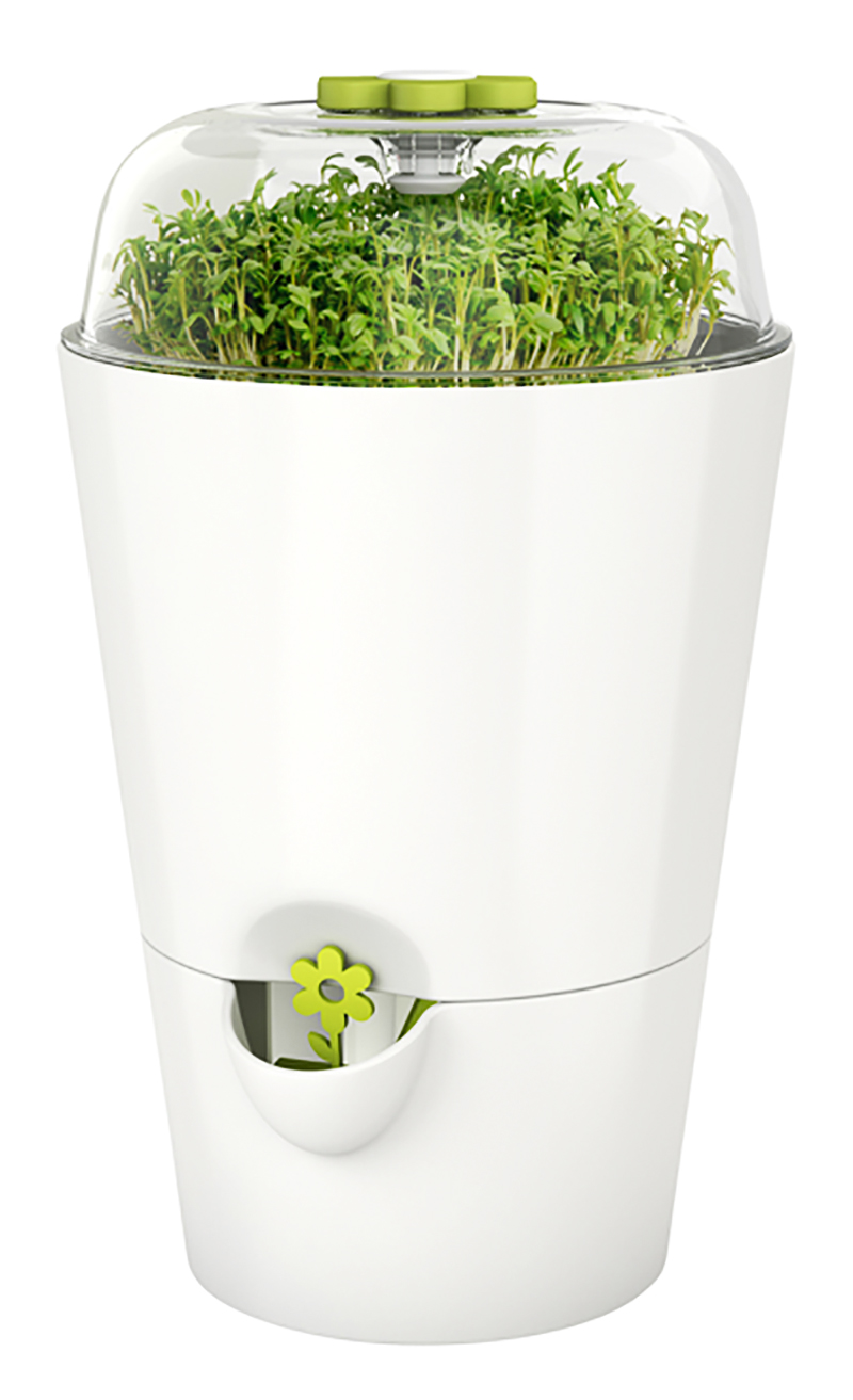 Pot pour cultiver des semences. Système d'irrigation intelligent. Réglage autonome du besoin en eau des plantes grâce à la mèche d'arrosage. Ø 15,2 cm.