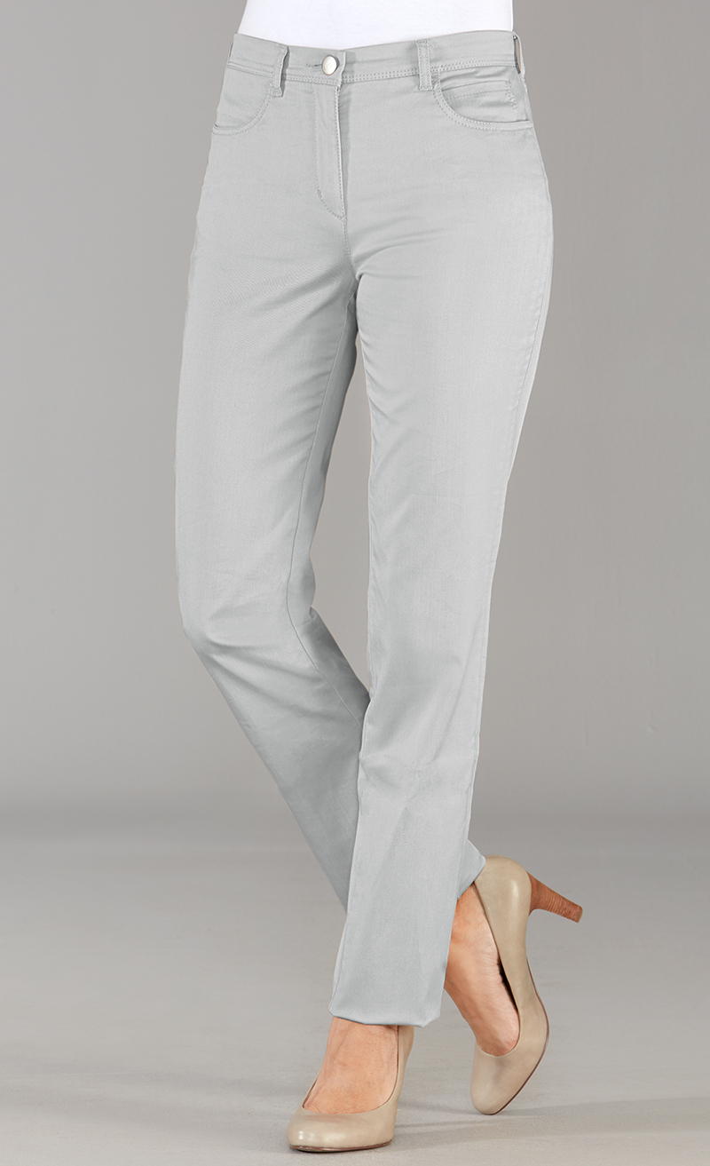 Forme 5 poches. Taille extensible invisible, extensible jusqu'à env. 4-6 cm. Coupe parfaite pour une silhouette mince.