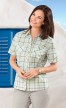 Coupe sportive, légèrement cintrée. Patte de boutonnage avec motif contrasté. Deux petites poches de poitrine.