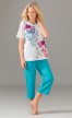 Imprimé exotique placé. Col rond contrasté. Pantalon 3/4. Jersey simple.