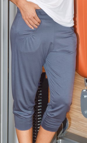 Pantalon confort 3/4 qui allie mode et bien-être! Gros plan sur la taille souple, ajustable et ne comprimant pas. À ne pas manquer: finitions en bords-côtes et deux petites poches coupées avec drapé délicat. Précieuse qualité jersey single.