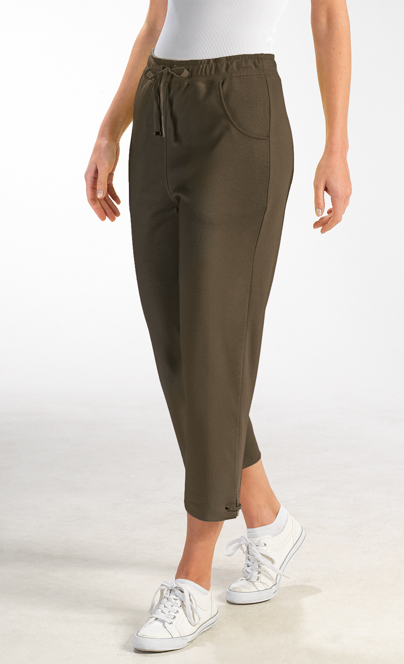 Pantalon de loisirs 7/8 assorti aux vestes de loisirs. Taille élastique avec cordon coulissé, deux poches latérales coupées. Qualité interlock: