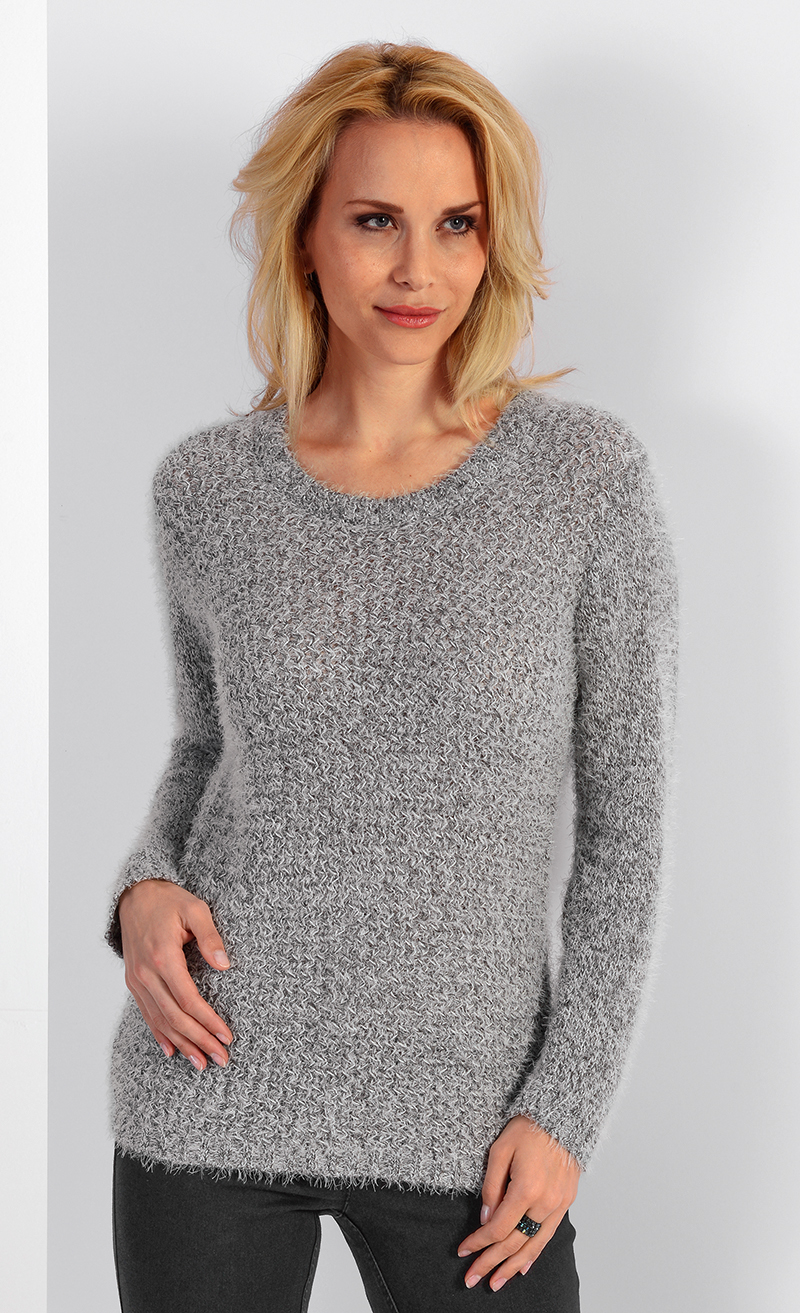 Motif tricoté ton sur ton et fils du plus bel effet.