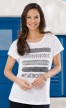 Imprimé sur le devant. Manches ailées.