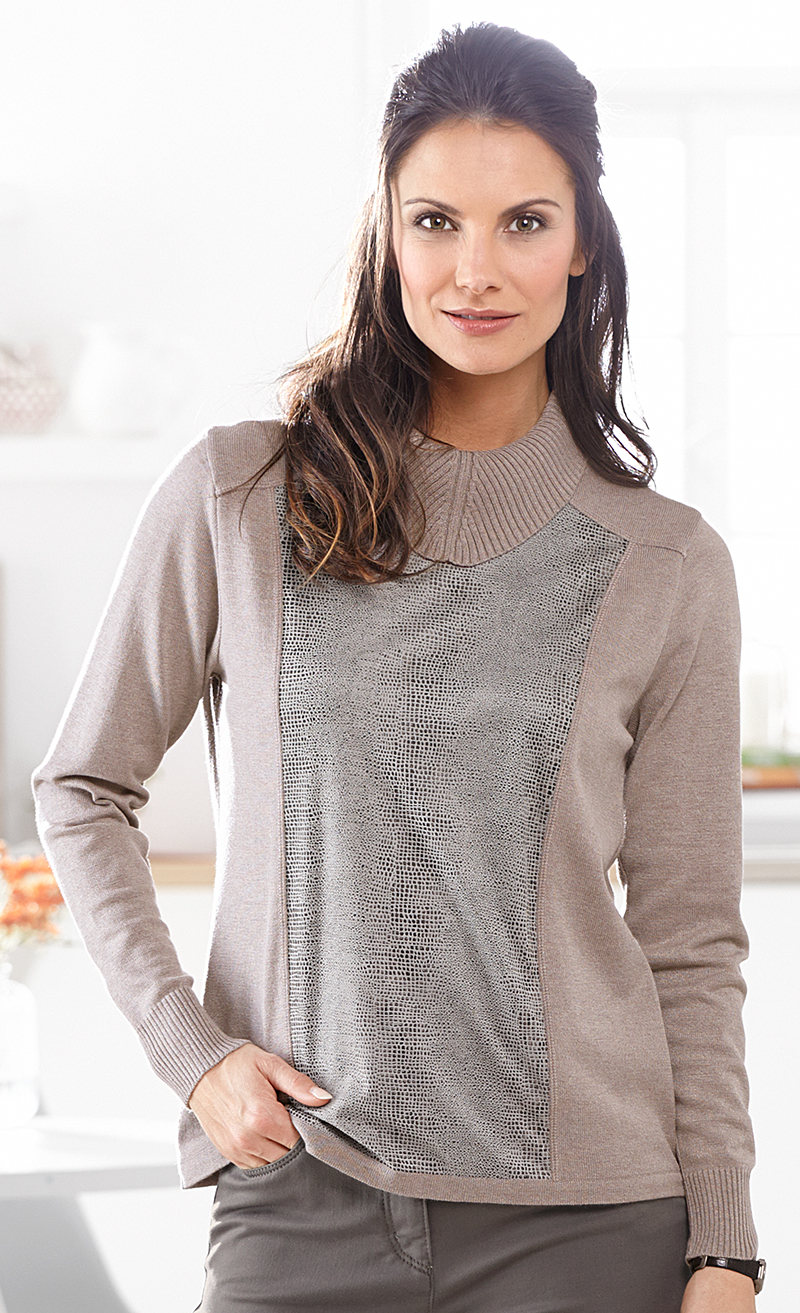 Pull-over avec col évasé: tellement chic! Empiècement imprimé devant.