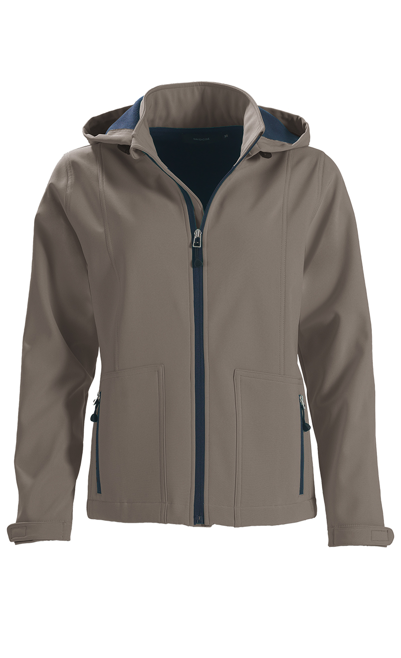 Veste soft-shell de coupe confortable avec capuche amovible, glissière et deux poches latérales zippées. Qualité sans soucis d'entretien.