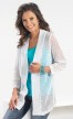 Cardigan long avec manches 3/4 modernes. Sans fermeture et avec motif ajouré estival pour un effet mode qui suscitera l'attention de tous!