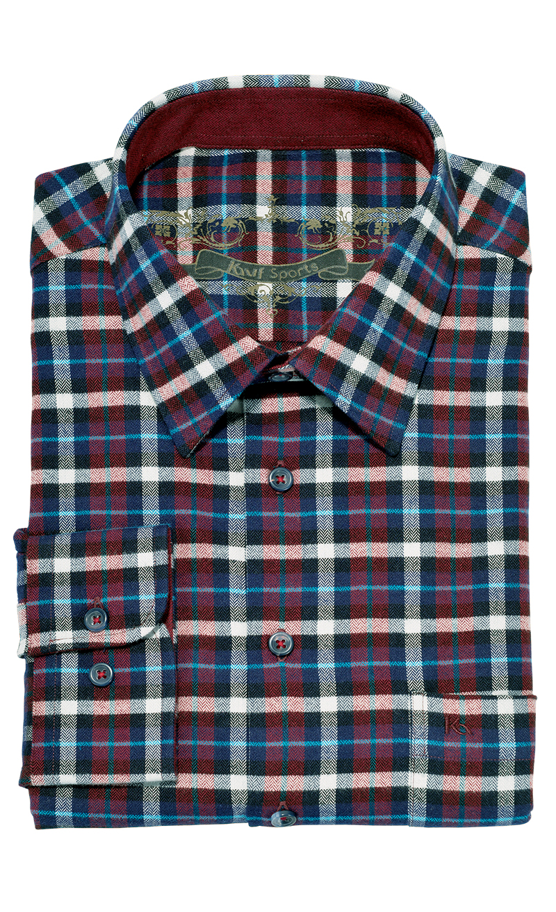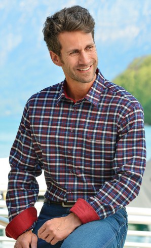 Chemise en flanelle douce. A noter le soin apporté à sa réalisation: col classique, une poche supérieure, patte boutonnage et manchettes garnies en contraste à l'intérieur.