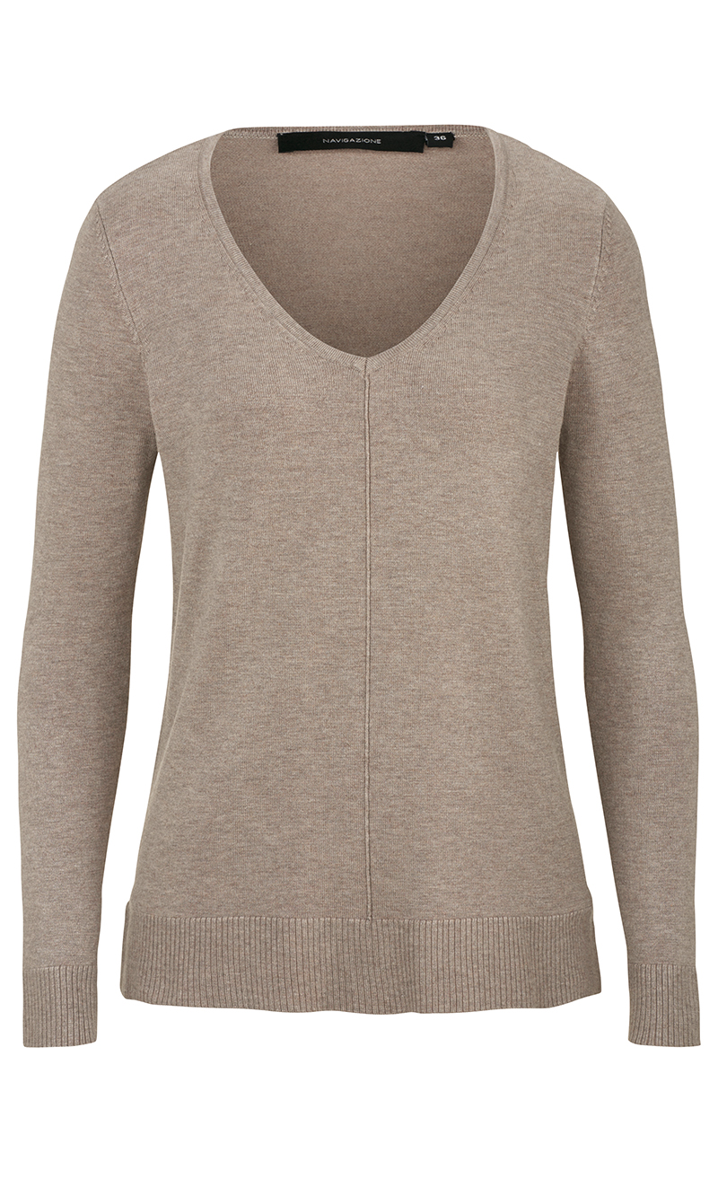 Pull-over. Forme droite avec fentes latérales. Petite fantaisie: dos de coupe plus longue.