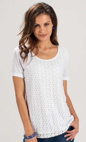 T-shirt d'un raffiné inimitable en dentelle fantaisie et doublé de jersey tout doux: l'union du confort et de la mode.